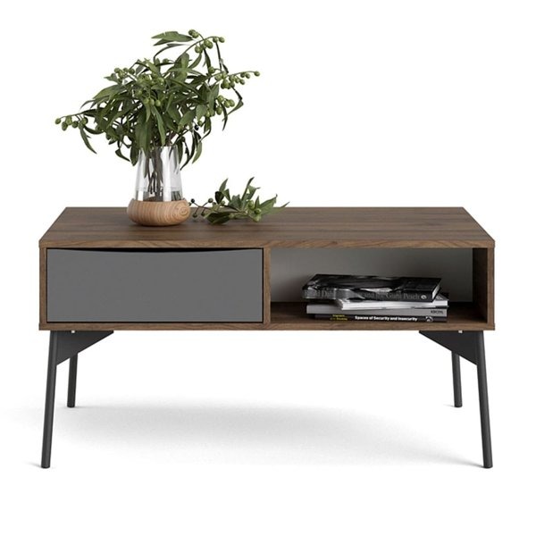 Fur stolik kawowy w stylu skandynawskim szary/biały mat/walnut
