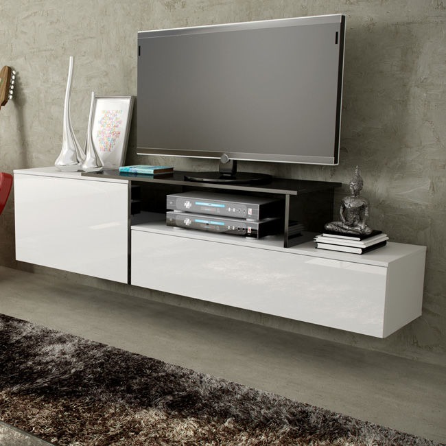 Gamma 3 szafka RTV biały połysk, detale czarny wysoki połysk wymiar bez cokoła szerokość 180 cm, wysokość 44 cm, głębokość 40 cm