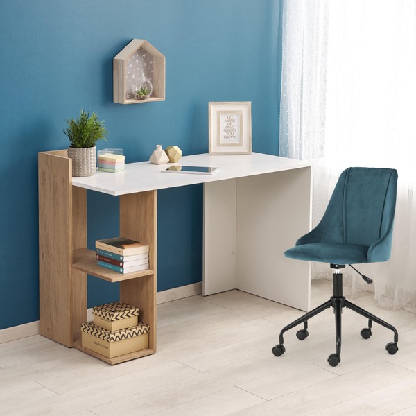 Ivo to doskonałe biurko do pokoju młodzieżowego czy dziecięcego! Atrakcyjna stylistyka połączona została z wygodą, która jest niezbędnym elementem podczas nauki. Biurko wyposażone zostało w regał, który jest świetnym rozwiązaniem na książki, zeszyty czy różnego rodzaju drobiazgi, do których Twoje dziecko będzie miało łatwy dostęp, a rzeczy zawsze będą na wyciągnięcie ręki. Dzięki tak funkcjonalnemu projektowi jakim jest Ivo, biurko jest idealne zarówno do nauki jak i zabawy, a jego nieduże gabaryty sprawiają, że wpiszę się w każdy dziecięcy pokój.