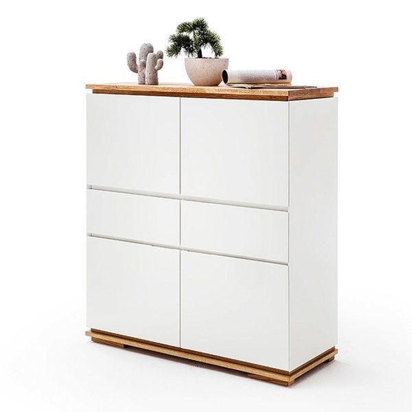 Komoda Luminos 4D2S biały matowy, podstawa i blat dąb lity sękaty olejowany