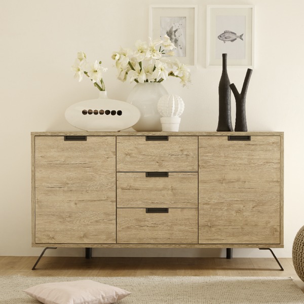 Urok kolekcji Palermo tkwi w jej zachwycającej prostocie wynikającej z minimalistycznej formy oraz naturalnego koloru dębu. To idealna kolekcja mebli do nowoczesnych mieszkań wpisujących się w stylistykę retro, którym meble nadadzą naturalności i harmonijności we wnętrzu. Komoda Palermo 3+2 idealnie wpiszę się w wystrój dzisiejszych mieszkań, w których liczy się funkcjonalność i ponadczasowy wygląd mebli. Komoda została doskonale zaprojektowana pod względem praktycznym, zapewnia dużo miejsca do przechowywania, dlatego przypadnie do gustu wszystkim, którzy cenią ponadczasowy design i funkcjonalność.