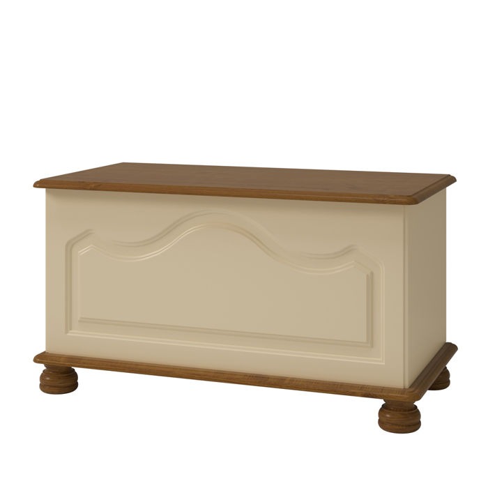 Nadaj wnętrzu romantyzmu z meblami Richmond! Szukasz niebanalnego wystroju Twojego wnętrza, ale poza wyglądem liczy się też dla Ciebie praktyczne zastosowanie mebli? Lubisz otaczać się przedmiotami, których jakości wykonania możesz być pewna? Kremowa romantyczna skrzynia Richmond spełni Twoje oczekiwania! Nogi mebla wykonano z drzewa naturalnego, co zapewnia jego dużą trwałość oraz wytrzymałość, nawet po wielu latach. Jasne, naturalne kolory zastosowane w projekcie ułatwiają dopasowanie skrzyni do wystroju, co pozwoli Ci zachować harmonijna aranżację, pełną subtelności i wyszukanego stylu.
