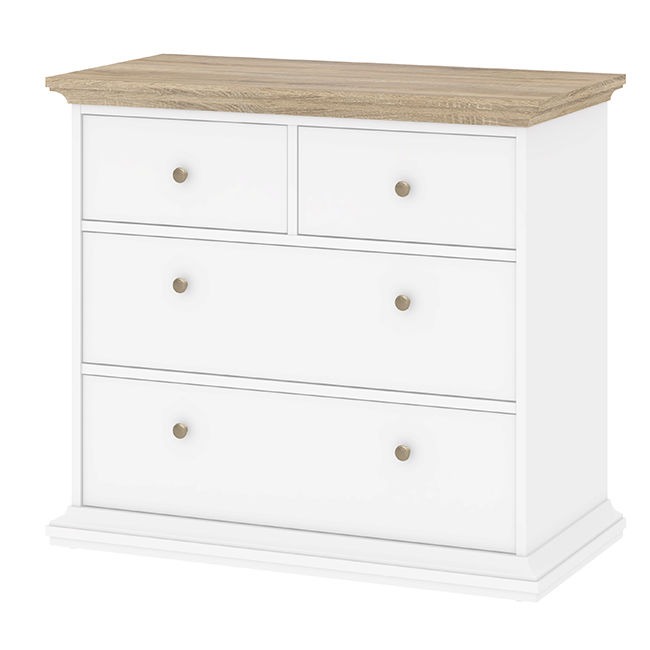 Romantyczna komoda Paris 2+2 biały mat, blat dąb sonoma