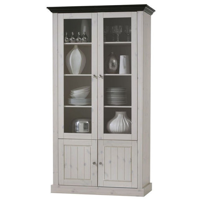 Biało – czarna romantyczna witryna MONACO to stylowy i elegancki mebel, który doskonale uzupełni twój salon, sypialnię bądź jadalnię. Przepiękna bielona sosna w połączeniu z klasyczną czernią nada charakter każdemu wnętrzu. Mebel składa się z jednej pojemnej dwuskrzydłowej szafki z przeszklonymi drzwiczkami, która idealnie sprawdzi się do przechowywania i eksponowania naczyń, książek bądź twoich ulubionych zdjęć. Dodatkowa zakryta szafka ukryje to wszystko, czego nie chciałbyś umieszczać na wierzchu. Drzwiczki stanowią doskonały element dekoracyjny- drobne tłoczenia wpisują się w romantyczny styl kolekcji, a metalowe uchwyty sprawiają wrażenie nowoczesności. To znakomite rozwiązanie dla osób ceniących sobie zarówno tradycję, jak i powiew świeżości w aranżacji wnętrz..