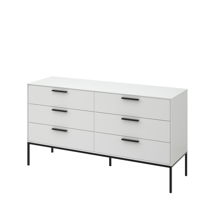 Skandynawski styl nawiązuję do minimalizmu oraz prostoty formy, która jest kwintesencją ponadczasowego designu. Kolekcja Slimline to nowoczesny projekt łączący nieprzemijalny styl i funkcjonalność oraz odzwierciedlenie niezwykle modnych nordyckich klimatów. Bezsprzecznie komoda to obowiązkowy mebel do wielu pomieszczeń, w którym schowasz niezbędne drobiazgi i przedmioty. Sześć pojemnych szuflad pozwoli na zaprowadzenie ładu i porządku w miejscu, w którym zagości na stałe. Minimalistyczną bryłę mebla ozdabiają czarne metalowe uchwyty oraz wysokie nóżki, dzięki którym kolekcja zyskuję elegancji i klasy. Wysoka podstawa zapewnia niezwykle lekki odbiór komody nadając całej bryle zgrabnego wyglądu.
