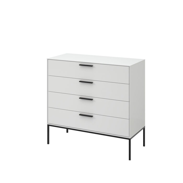 Skandynawski styl nawiązuję do minimalizmu oraz prostoty formy, która jest kwintesencją ponadczasowego designu. Kolekcja Slimline to nowoczesny projekt łączący nieprzemijalny styl i funkcjonalność oraz odzwierciedlenie niezwykle modnych nordyckich klimatów. Bezsprzecznie komoda to obowiązkowy mebel do wielu pomieszczeń, w którym schowasz niezbędne drobiazgi i przedmioty. Cztery pojemne szuflady pozwolą na zaprowadzenie ładu i porządku w miejscu, w którym zagości na stałe. Minimalistyczną bryłę mebla ozdabiają czarne metalowe uchwyty oraz wysokie nóżki, dzięki którym kolekcja zyskuję elegancji i klasy. Wysoka podstawa zapewnia niezwykle lekki odbiór komody nadając całej bryle zgrabnego wyglądu.