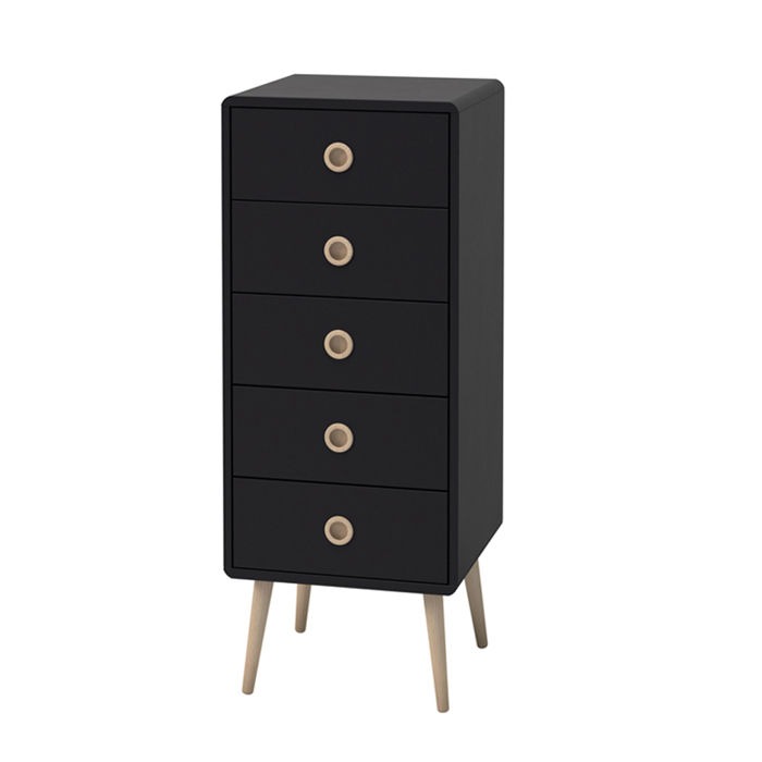 Na pewno Soft Line komoda 5S styl retro jest nowoczesnym projektem łączącym elegancję i funkcjonalność. Górny blat tej komody wykonany został z płyty MDF o grubości 18mm. Materiał ten posłużył także do wykonania korpusu (15 mm) oraz frontu szuflad (o grubości 15 mm). Trzeba podkreślić, że uchwyt (o średnicy 50mm) wykończony został drewnem dębowym. Drewna dębowego użyto również do produkcji nóżek o wymiarach Ø35×210 mm. Dodaje to jeszcze więcej czaru i uroku całemu meblowi. W skład komody wchodzi pięć pojemnych szuflad oraz metalowe prowadnice (łożyska kulkowe). Gwarantuje to, że bardzo duża ilość rzeczy znajdzie tam swoje miejsce, a w domu łatwiej będzie zapanować nad porządkiem. Komoda w stylu retro to Twoje rozwiązanie w kwestii najwyższej klasy mebli.