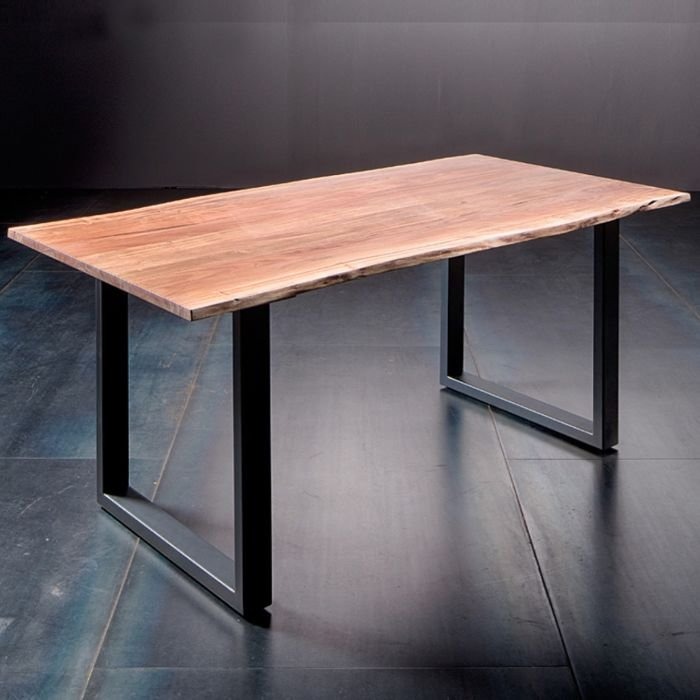 Niepowtarzalność stołu Catania wynika z faktu, że blat wykonany jest z litego drewna, który jest materiałem wyjątkowym i nieprzemijalnym. Piękno naturalnego drewna połączone zostało z niezwykle współczesną podstawą wykonaną z metalu w przepięknym kolorze antracytu i kształcie litery "U" , która dodaję nowoczesnego designu meblowi. Blat wybarwiony w naturalnym kolorze podkreślony został ciosanymi brzegami, które dodają surowości i unikalności całej bryle. To wyjątkowy i oryginalny mebel, który stanie się punktem centralnym w każdym pomieszczeniu ze względu na unikatowy i niepowtarzalny design.