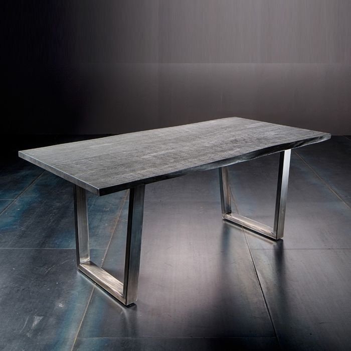 Niepowtarzalność stołu Catania wynika z faktu, że blat wykonany jest z litego drewna, który jest materiałem wyjątkowym i nieprzemijalnym. Piękno naturalnego drewna połączone zostało z niezwykle współczesną podstawą wykonaną ze szlachetnej stali szczotkowanej w kształcie trapezu, która dodaję nowoczesnego designu meblowi. Blat wybarwiony w niezwykle rzadko spotykanym i pięknym kolorze szarym piaskowanym, który dodatkowo podkreślony został ciosanymi brzegami, które dodają surowości i unikalności całej bryle. To wyjątkowy i oryginalny mebel, który stanie się punktem centralnym w każdym pomieszczeniu ze względu na unikatowy i niepowtarzalny design.