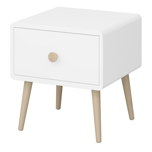 Minimalizm i prostota od dawna podbijają nasze serca, królując w naszych domowych wnętrzach omijając kolorowe pokoje dziecka, lecz warto postawić na skandynawski funkcjonalizm i prostotę we wnętrzu dla najmłodszych. Biała i klimatyczna kolekcja mebli Gaia to ponadczasowe wzornictwo, które pozwoli Ci stworzyć przytulne i ciepłe wnętrze. Szafka nocna Gaia to niezbędny mebel w pokoju zarówno nastolatka jak i młodszego dziecka. Jest niezwykle subtelna, ale również praktyczna, dzięki szufladce, w której nasza pociecha przechowa sobie niezbędne drobiazgi. Duży blat to idealne miejsce na lampkę nocną, budzik czy odłożenie książki.