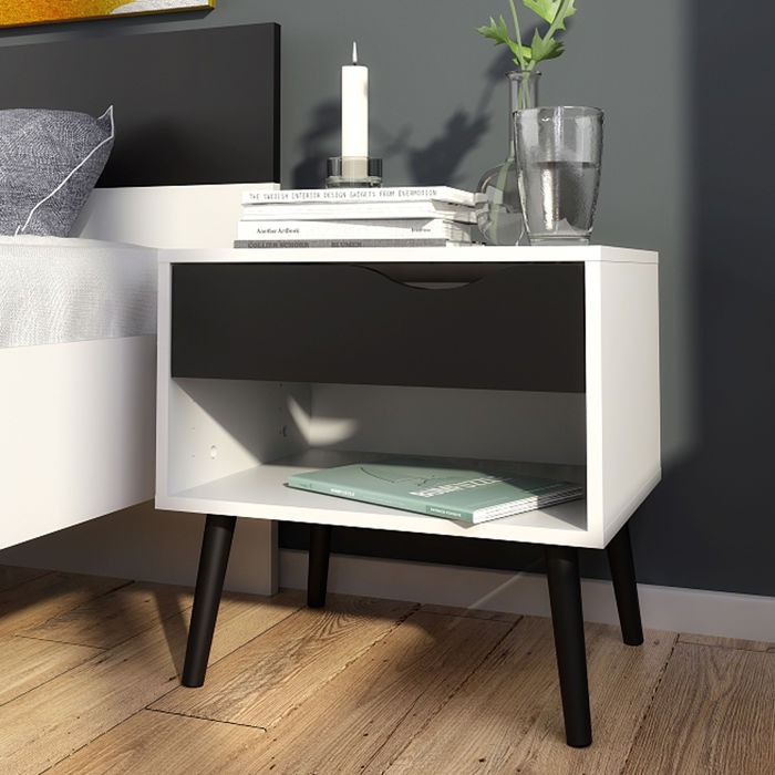 To co trzymamy przy łóżku to najczęściej najbardziej intymne i prywatne drobiazgi. Aby mieć je pod ręką zawsze gdy udajemy się na spoczynek lub budzimy w promieniach porannego słońca, warto zadbać o piękny i pojemny stolik nocny. Idealnym wyborem wtedy okazuje się stolik nocny Oslo. Doskonała propozycja dla osób, które cenią sobie miejsce na prasę czytaną przed snem, kosmetyki lub budzik. Nowoczesna linia o prostej formie sprawia, że każde przebudzenie będzie przyjemnością. Jasne barwny ułatwiają zasypianie a cała sypialnia nabiera czystego charakteru i ciepłej aury tak ważnej dla relaksu i odpoczynku. Praktyczna półka oraz kontrastująca szuflada dają dużo miejsca na drobiazgi a smukłe nóżki stabilnie podtrzymują całość konstrukcji. Stolik dzięki któremu przy łóżku zawsze jest to czego najbardziej potrzeba!
